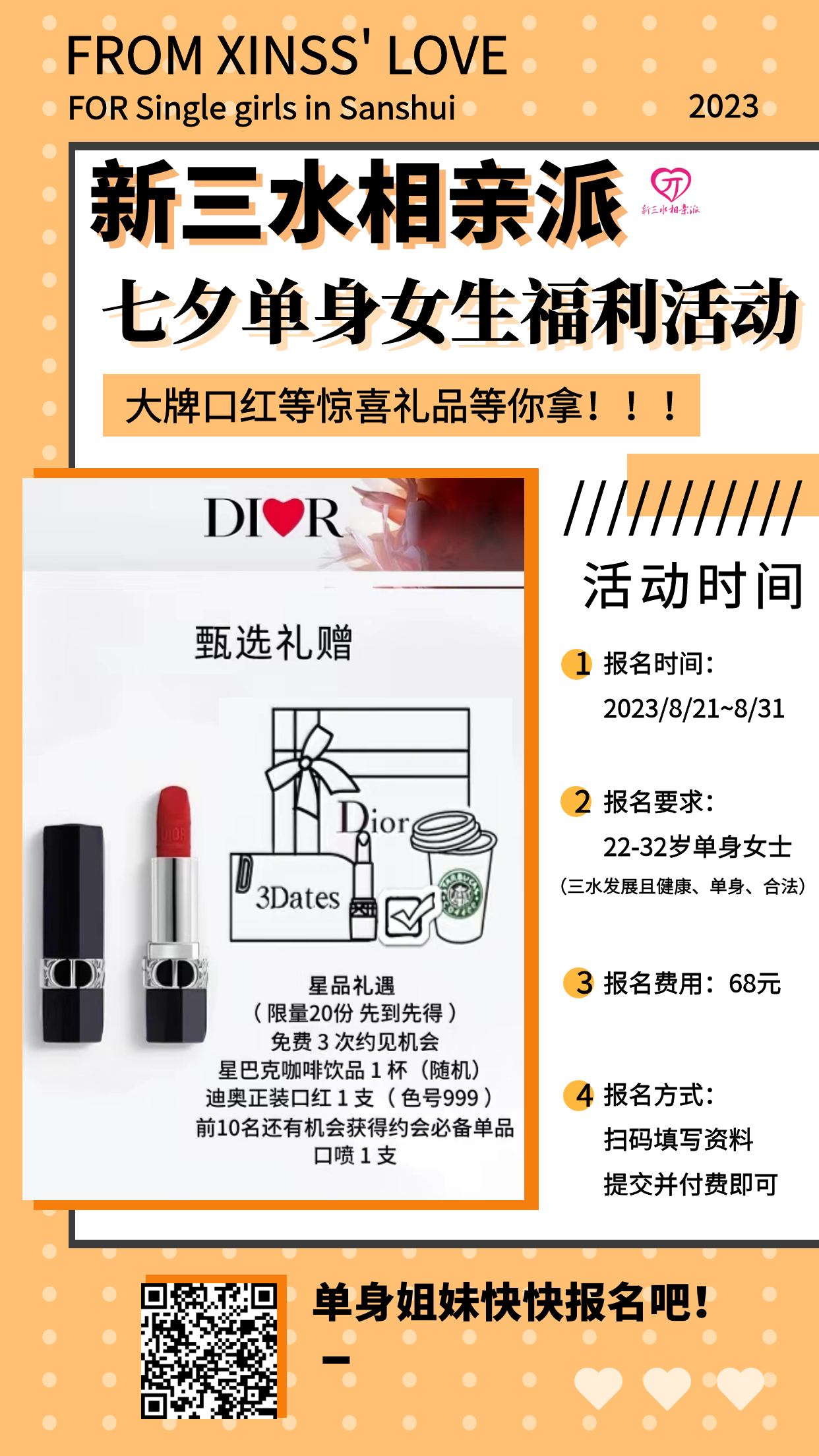 温馨提示:活动仅限女生报名!长按识别下方二维码,填写报名信息,再提交费用!!